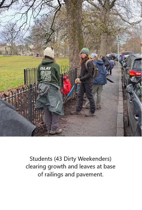 We have had great help from scout groups and University students (Dirty Weekenders) who have cleared a lot of growth around railings and other areas which used to be spayed with weedkiller. Unfortunately CEC do nor have the resources to manually clear grass at edges or rotting leaves on pavements. FoMBL (NR) will continue to use these excellent, enthusiastic volunteers whenever possible.