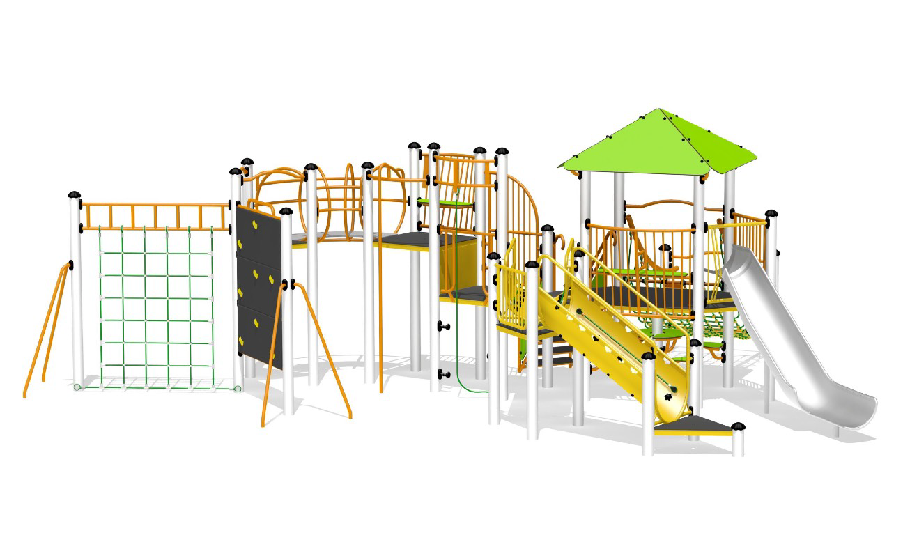So far the proposal includes a possible inclusive play unit from local manufacturer 'Inclusive Play', a traditional slide replacement and an inclusive roundabout. The multi play unit is shown below.