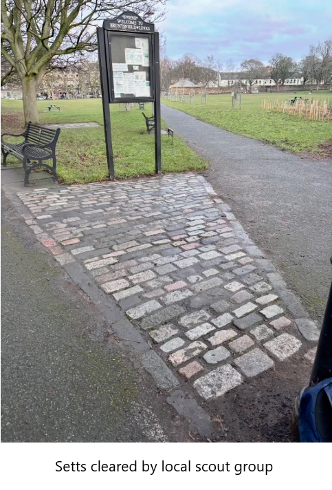 We have had great help from scout groups and University students (Dirty Weekenders) who have cleared a lot of growth around railings and other areas which used to be spayed with weedkiller. Unfortunately CEC do nor have the resources to manually clear grass at edges or rotting leaves on pavements. FoMBL (NR) will continue to use these excellent, enthusiastic volunteers whenever possible.
