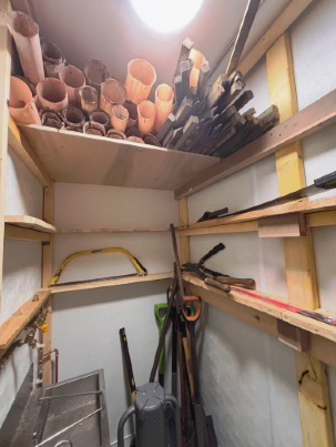 We have been given the use of a very small secure tool store at the new toilets on Middle Meadow Walk. Alistair Cant has done a brilliant job of fitting timber shelves to make the most of the space. We still have to retain some storage at the Cricket Pavilion.